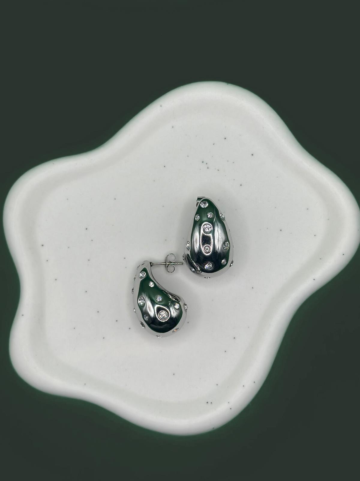 Large drop earrings feature dazzling CZ stones that add a touch of glamour.